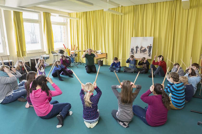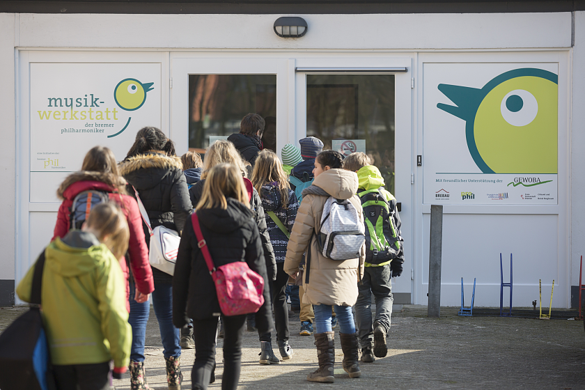 Am Mittwoch, den 9. März 2016 machten wir, die Klasse 4b, uns auf den Weg nach Bremen-Nord, eine kleine Reise mit Straßenbahn, Zug und Bus. Das Ziel war die neue Musikwerkstatt der Bremer Philharmoniker, die „Percussionswelten“. Und um das Ergebnis gleich vorweg zu nehmen: die Reise lohnt sich!