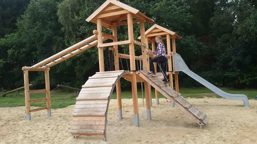 Begeistert und aufgeregt begrüßten Sie die Gäste mit einem selbstgedichteten Willkommenslied. Die Einweihung des neuen Spielgerätes auf der Wiese, neben dem bekannten und beliebten Sandhügel, wurde mit dem Lied „Anders als du…“ besungen.