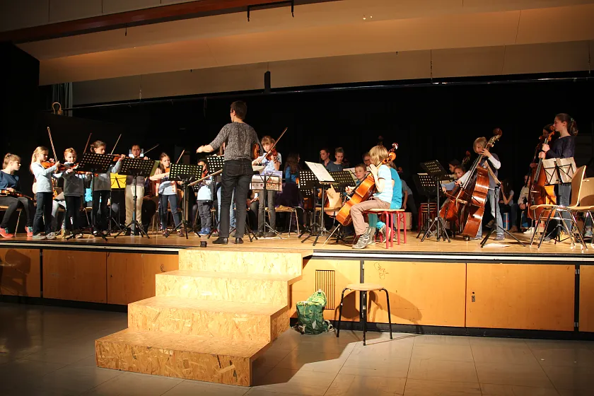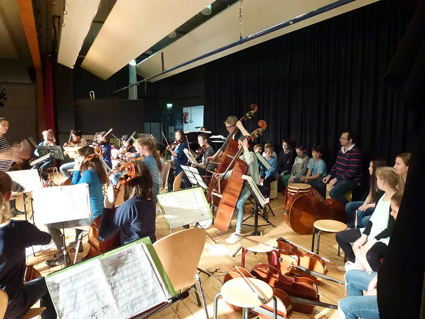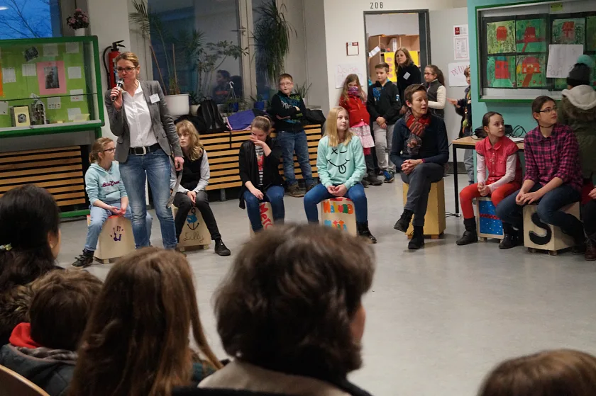 Am Donnerstag, den 21.04.2016 gab es ein Kooperationskonzert zwischen dem Grollander Orchester und dem Ensemble der Grundschule Grolland mit der Cajon Kooperationsgruppe zwischen den beiden Schulen Grundschule Grolland und dem Alexander-von-Humboldt Gymnasium.