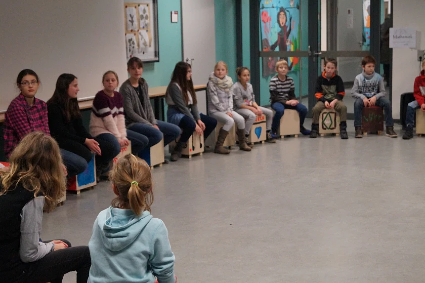 Die Kooperation ist durch den Cajonbau einer 6. Klasse und der 4. Klassen der Grundschule Grolland entstanden. Die Idee stammte von dem Musiklehrer Herrn Rogasch aus dem Alexander-von-Humboldt Gymnasium und wurde von unserer Musiklehrerin Frau Barlag begleitet.