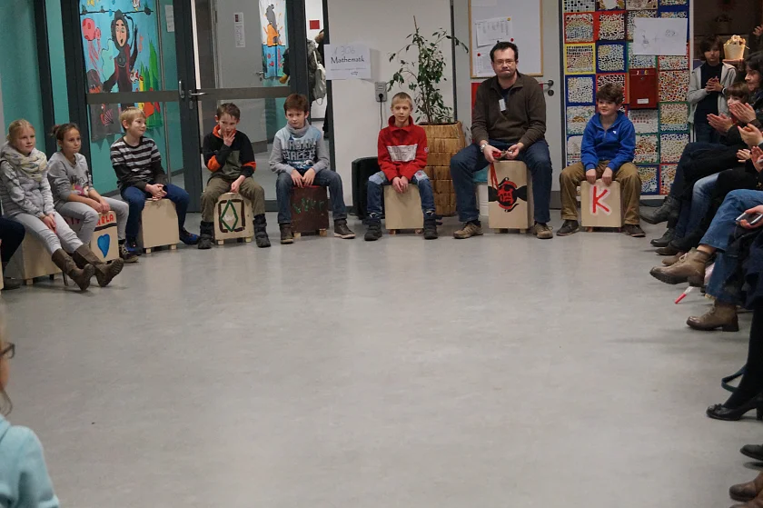 Die Grundschule Grolland und das Alexander von Humboldt Gymansium haben ein musikalisches Kooperationsprojekt durchgeführt. Schülerinnen und Schüler aus den 4. Klassen und aus einer 6. Klasse des Gymnasiums haben zusammen an vier Terminen seit November 2015 Cajons gebaut. Darüber hinaus haben sie ein Musikstück mit den selbstgebauten Instrumenten einstudiert und es zusammen am Tag der offenen Tür des Alexander von Humboldt Gymnasiums am 14.01.2016 vorgespielt.