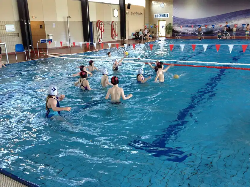 Letzten Mittwoch (13.04.) hat die Grundschule Grolland wieder beim diesjährigen Miniwasserballturnier teilgenommen. Begleitet wurden sie von Herrn Mack.