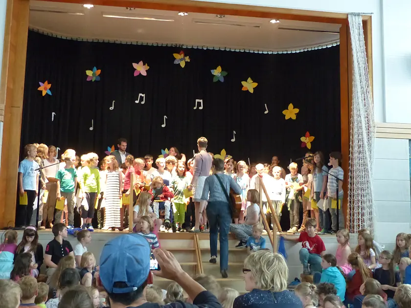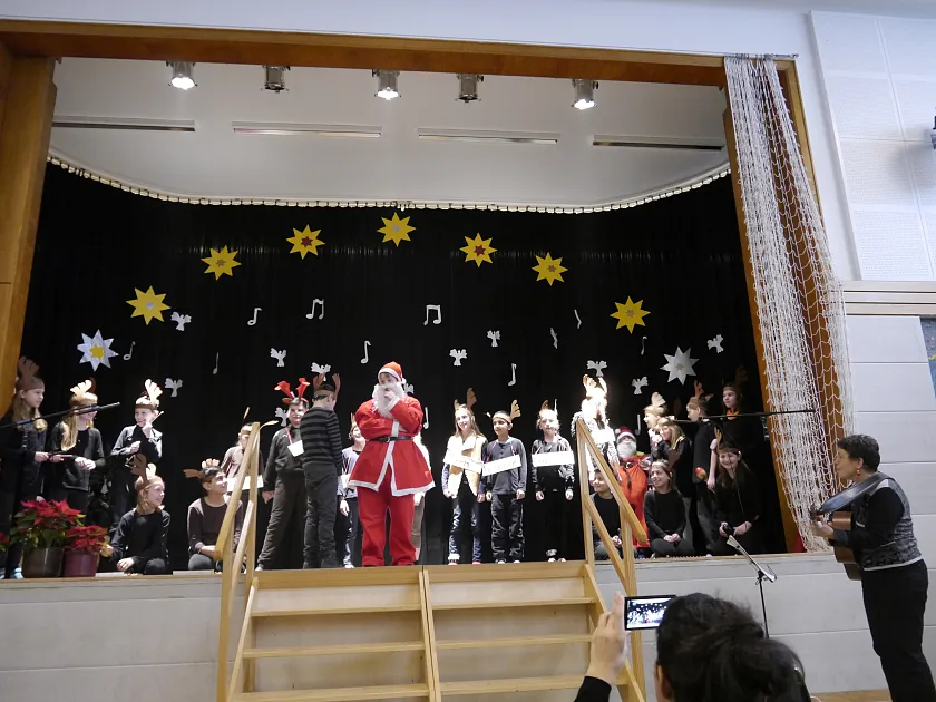 Am letzten Schultag haben wir wieder unser traditionelles Weihnachtssingen gefeiert. Das Kollegium und die Kinder haben sich wieder mächtig ins Zeug gelegt und ein schönes buntes Programm auf die Beine gestellt, das die Zuschauer über eine Stunde lang unterhalten hat.