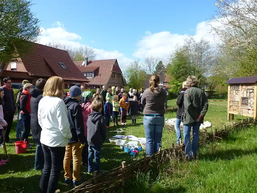In diesem Zuge wurde auch unser neues Insektenhotel eingeweiht. Das von der swb Unterstützte Projekt wurde von A&Ö Huchting in die Tat umgesetzt und gebaut. Am Samstag war es dann so weit und es wurde eingeweiht. Frau Wendelken von A&Ö erklärte den anwesenden noch den Sinn und Zweck eines Insektenhotels und wie dieses funktioniert. Anschließend konnten die Kinder noch Samenbomben für den ebenfalls neu entstandenen Insektenhügel basteln.