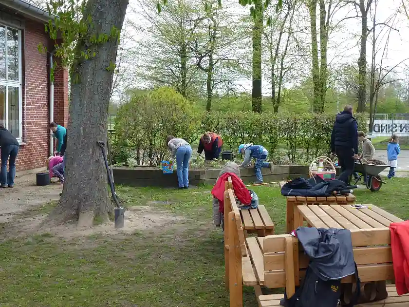 Vergangenen Samstag gab es in der Grundschule Grolland wieder die alljährliche Gartenaktion. Bei dieser Aktion helfen die Eltern unsere zahlreichen Gärten und naturbelassenen Flächen zu pflegen. Bei Temperaturen, die nicht gerade an den Frühling erinnerten, kamen aber in den meisten Klassen viele Eltern zum Unterstützen.