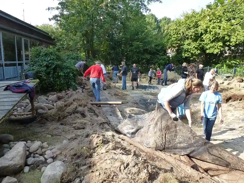 Auf diesem Wege möchten wir uns noch mal ganz herzlich bei allen fleißigen Helfern bedanken, die es ermöglicht haben, dass der Teich jetzt neu angelegt werden kann.