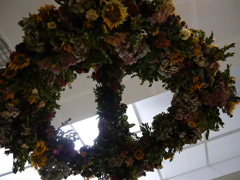 Unser diesjähriges Herbstfest fand bei 20 Grad Außentemperatur statt. trotzdem haben wir eine herbstliche Stimmung in die Eingangshalle gezaubert. Die Erntekrone vom Erntefest schmückte wieder die Decke und die Eltern hatten wieder viele Erntegaben für unseren Gabentisch vorbei gebracht.