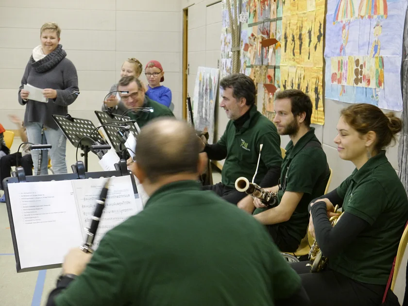 Herr Rogasch - Musiklehrer des Gymnasiums - trat mit dieser Idee an uns heran und unsere Musiklehrerin Frau Barlag hat das Projekt für die Grundschule begleitet.