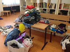 Immer wieder hat die Grundschule Grolland in den letzten Jahren den Verein unterstützt und Spenden gesammelt. Bei der jetzigen Spendenaktion sind wieder viele Kleidungsstücke zusammengekommen. Diesmal hat die Grundschule auch Tische und Stühle aussortiert, die sie nicht mehr benötigen und sogar ein Werktisch, den die dortige Tischlerei gut gebrauchen kann, ist mit auf Reisen gegangen.