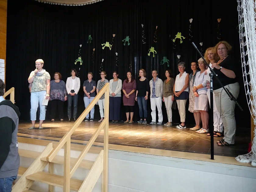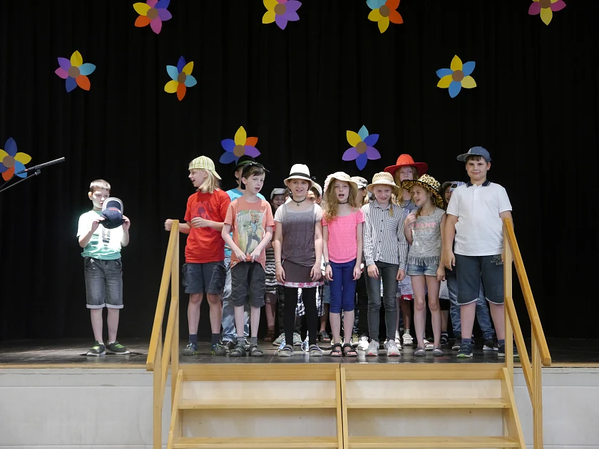 Die Klassen hatten wieder ein buntes Programm zusammengestellt. Neben Liedern und Gedichten gab es auch Lieder zum Mitsingen und kleine Theaterstücke. Auch der Chor beteiligte sich mit zwei Liedern.