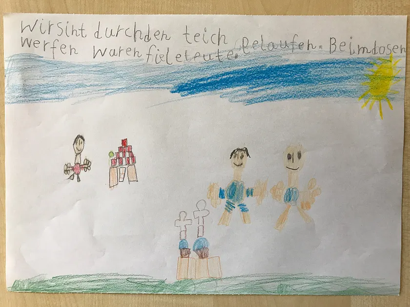 Ich fand es schön, weil ich 5 km (2 Runden gelaufen bin, Leni auch. Wir haben geredet und uns Witze erzählt, naja einen. Dann auch ein paar komische Sachen. das war schön. (Anh, 2b)