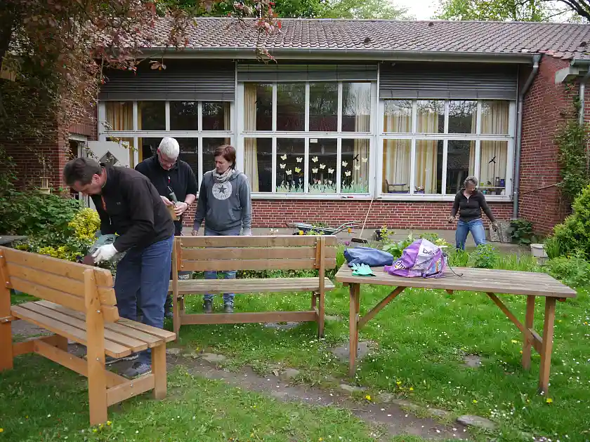 Nach einem gemeinsamen Lied gingen dann alle an die Gartenarbeit. Für das leibliche Wohl hat wieder der Schulverein gesorgt.