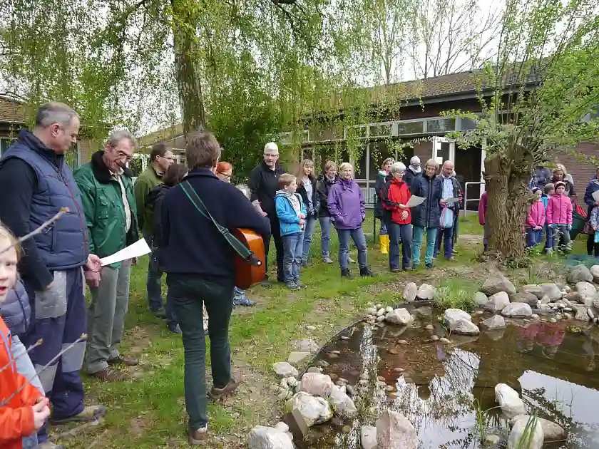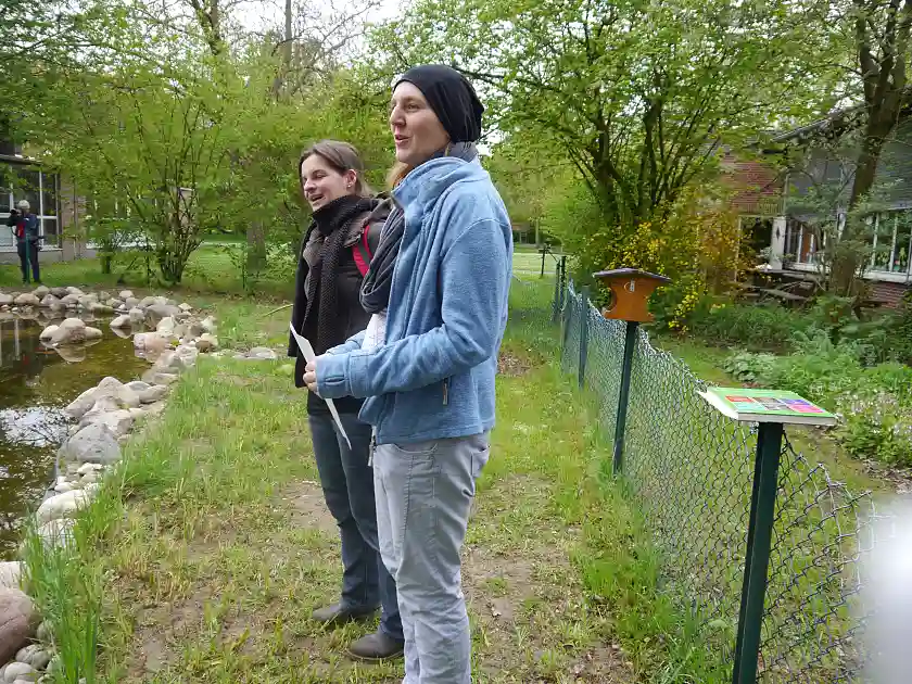 Bevor es an die Arbeit ging, versammelten sich alle am unserem Teich, um ihn einzuweihen.