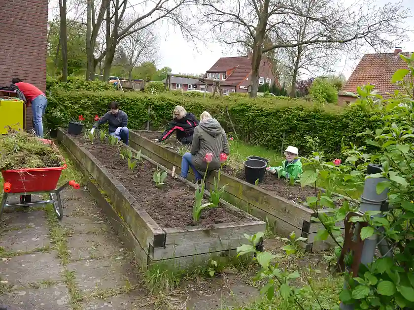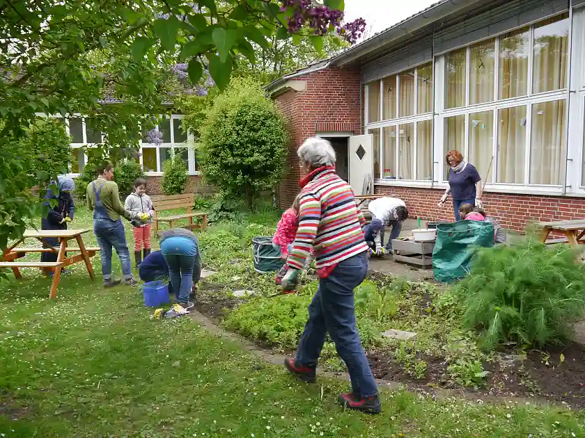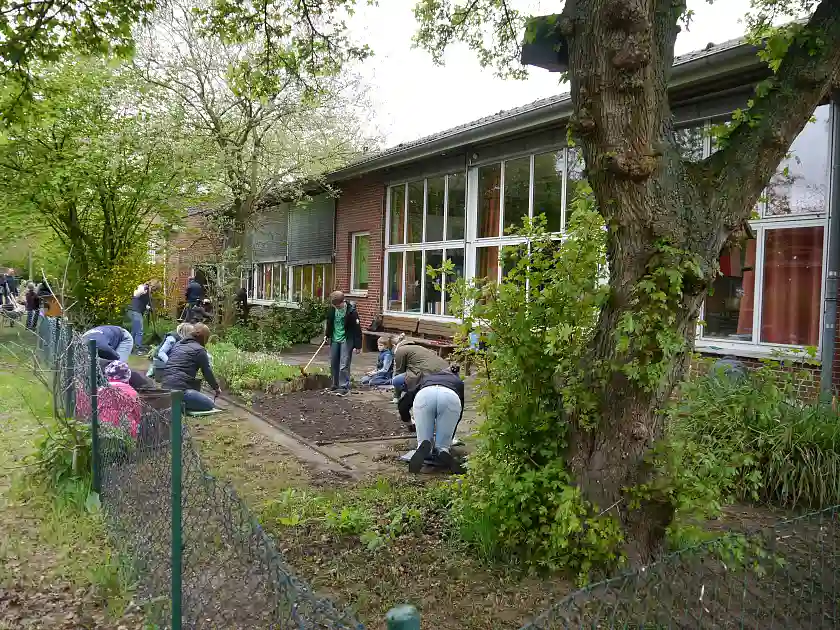 Jedes Jahr treffen sich Eltern, Kinder und alle Mitarbeiter der Schule im Frühling, um die Grünen Daumen für das Schulgelände aktiv werden zu lassen.