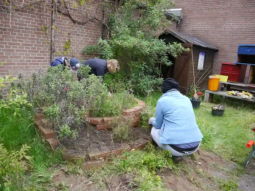 Dabei helfen die Eltern den Schulgarten, den Schulwald, die Beete der Klassen zu bearbeiten und die Mulde bei der Wasserpumpe zu reinigen, damit die Kinder wieder dort in den Pausen spielen können.