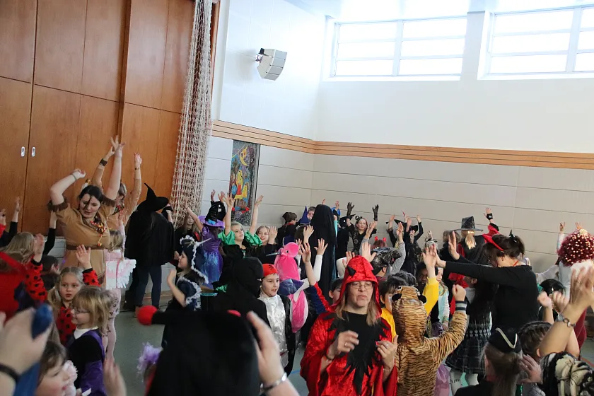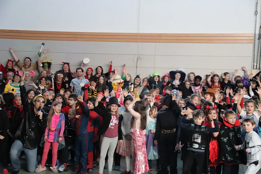 Am 12.02.2018 feierte die Grundschule Grolland wieder Fasching. Nach einem kurzen Ankommen in den Klassen begann die große Polonaise durch die Schule. Jede Klasse wurde abgeholt und alle gingen gemeinsam in die Sporthalle.