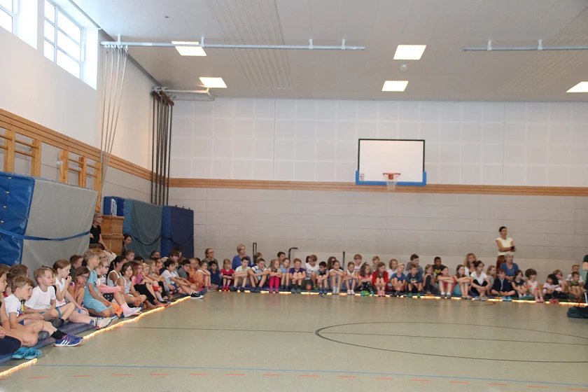 „Wir begrüßen euch alle, alle die ihr gekommen seid“ schalt es von der Bühne der Turnhalle ... erwartungsvollen Erstklässlern und ihren Familien entgegen. Nach einem gemeinsamen Gottesdienst in der St-Lukas-Kirche in Grolland versammelten sich die Erstklässler mit ihren Familien und zukünftigen Lehrer/innen in der Turnhalle der Grundschule Grolland zur Einschulungsfeier. Die Schulleiterin, Judith Wismach, begrüßte die neuen Schulkinder herzlich und die zweiten Klassen boten ein Programm mit fröhlichen Liedern und Theaterstück zum Thema „der erste Schultag“. Im Anschluss wurden die neuen Erstklässler/innen von ihren Klassenlehrer/innen in die Klassenräume begleitet, wo der spannendste Teil der Einschulung stattfand: die erste Schulstunde. Nun gilt es, bis Montag abzuwarten und sich schon einmal auf den ersten vollen Schultag zu freuen.