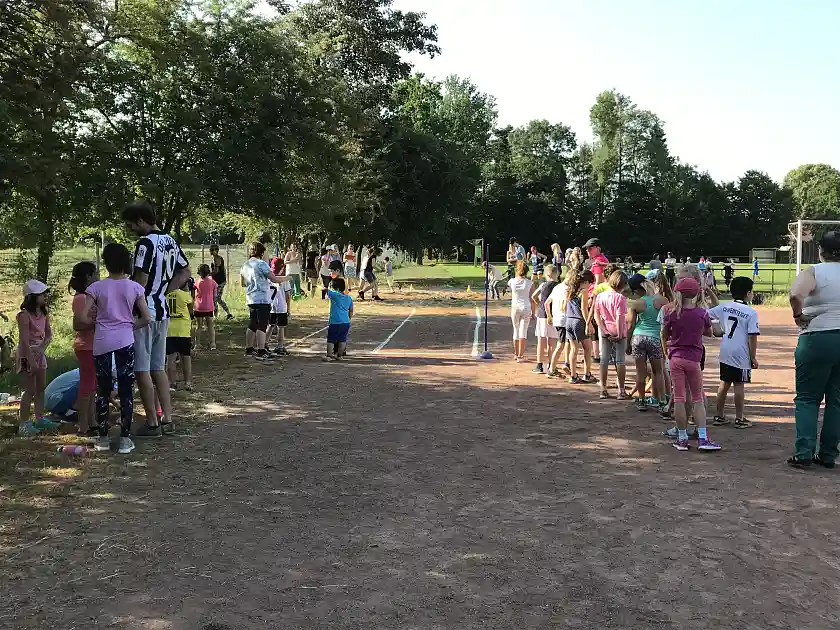 Die anstrengenden Disziplinen wie der Sprint haben wir gleich an den Anfang gelegt. Der 800 m Lauf war freiwillig. Alle anderen Disziplinen fanden teilweise sogar im Schatten statt, so dass wir gut durch die heiße Zeit gekommen sind. Am Ende des Sportfestes gab es wie immer eine Spaßstaffel, die mit Wasser für Abkühlung sorgte. Zusätzlich hatten wir eine Wasserlandschaft aufgebaut, die auch für die nötige Abkühlung sorgte und auch noch riesigen Spaß machte.