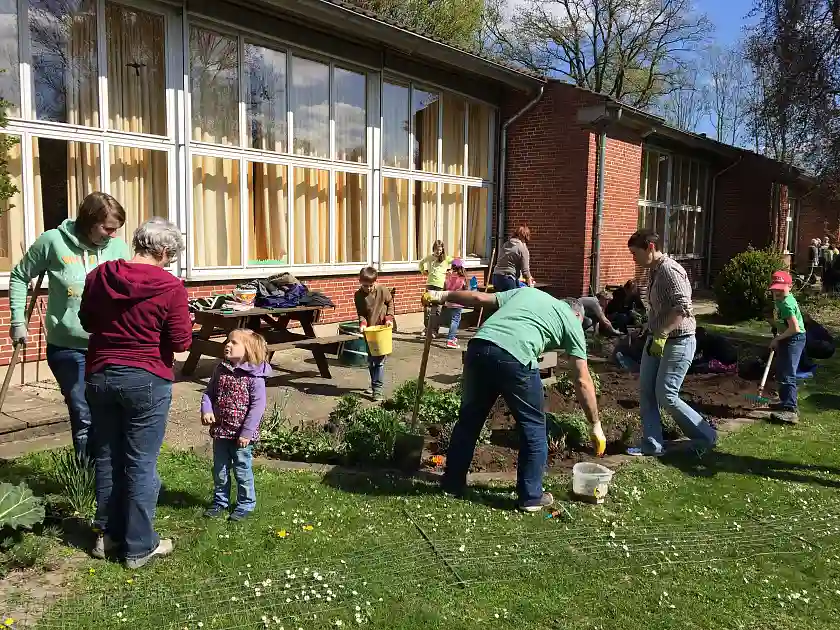 Themen wie Ernährung, Gesundheit und Natur bilden einen Schwerpunkt in unserem Unterricht. Das große Schulgrundstück und die angrenzenden Naturschutzgebiete bieten vielfältige Möglichkeiten ökologische Projekte durchzuführen, Naturerfahrungen mit allen Sinnen zu machen und handlungsorientiert zu arbeiten. Jeder Klasse steht ein eigener kleiner Garten zur Verfügung. Jedes Jahr bringen wir mit Hilfe der Eltern in einer großen Gartenaktion die Gärten wieder auf Vordermann.