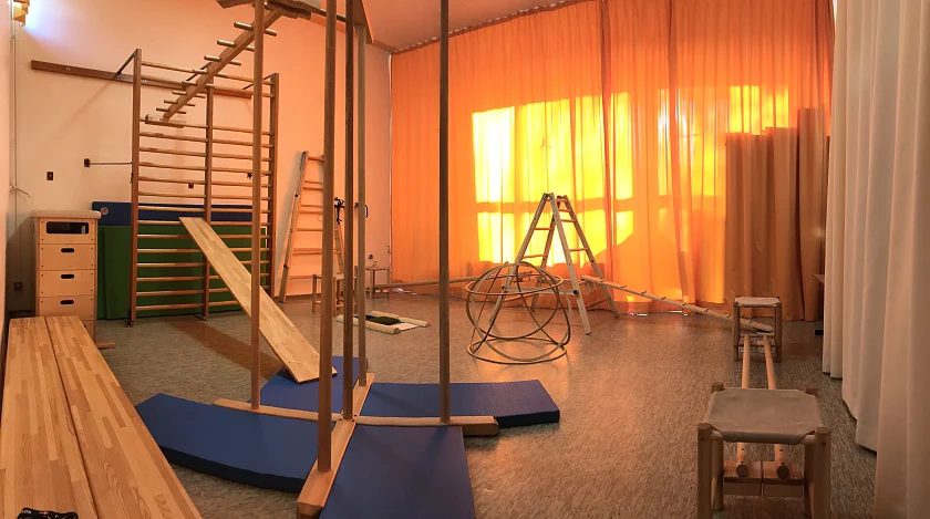 Seit einiger Zeit bieten wir auch Hengstenberg in unserem Bewegungraum an. Die Hengstenberg-Bewegungsmaterialien kommen ursprünglich in der Natur vor: Leitern, Hocker, Balancierstangen, Hühnerleitern,...laden die Kinder ein zum Kriechen, Krabbeln, Klettern, Balancieren, Rutschen, Springen... Alle Materialien sind kombinierbar und dienen als vielseitige und bewegliche Bauelemente. Somit bieten sie einerseits den Kindern die Möglichkeit, sich Bewegungslandschaften zu bauen, die sie in ihrem eigenem Zeitmaß und eigener Dynamik erkunden dürfen und die der Entfaltung ihrer Geschicklichkeit und Bewegungsfreude Raum geben. Andereseits beantworten die Stangen, Leitern, Bretter,... das Bewegungverhalten der Kinder in einem hohen Maße von selbst: