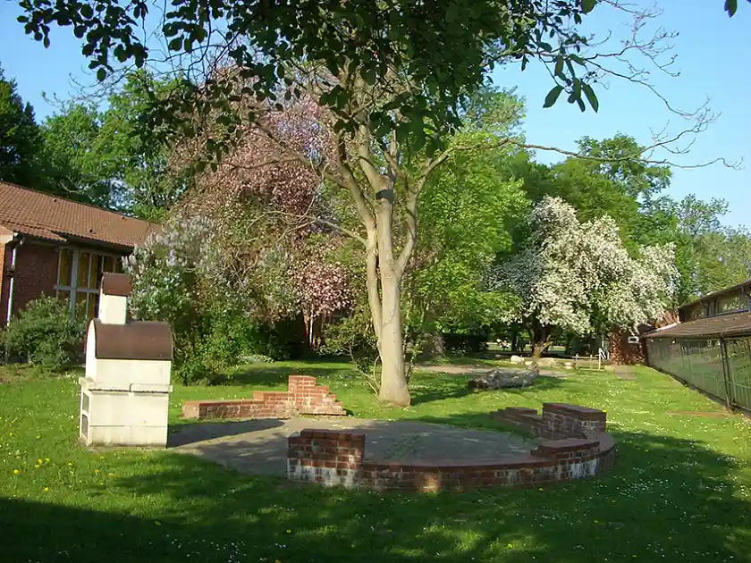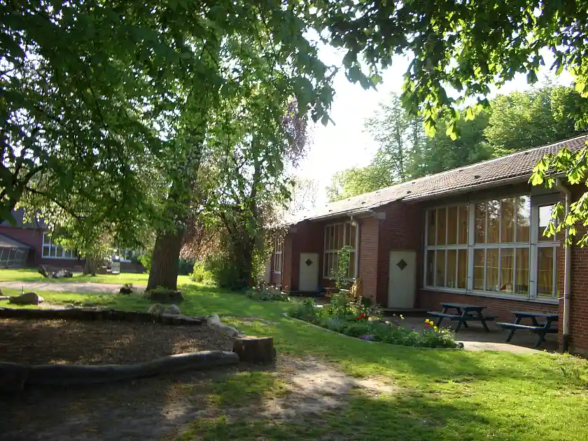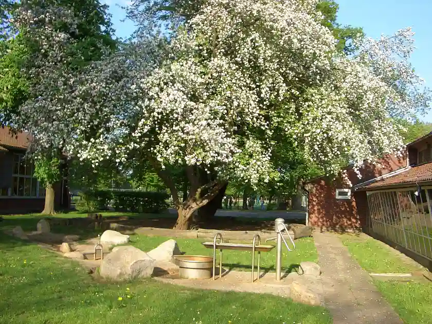Die Schule hat ein großes Außengelände und liegt idyllisch „mitten im Grünen“ in der Nähe des Parks „Links der Weser“. Es gibt für die Kinder vielfältige Bereiche zum Spielen, Entspannen, Forschen und Entdecken.
